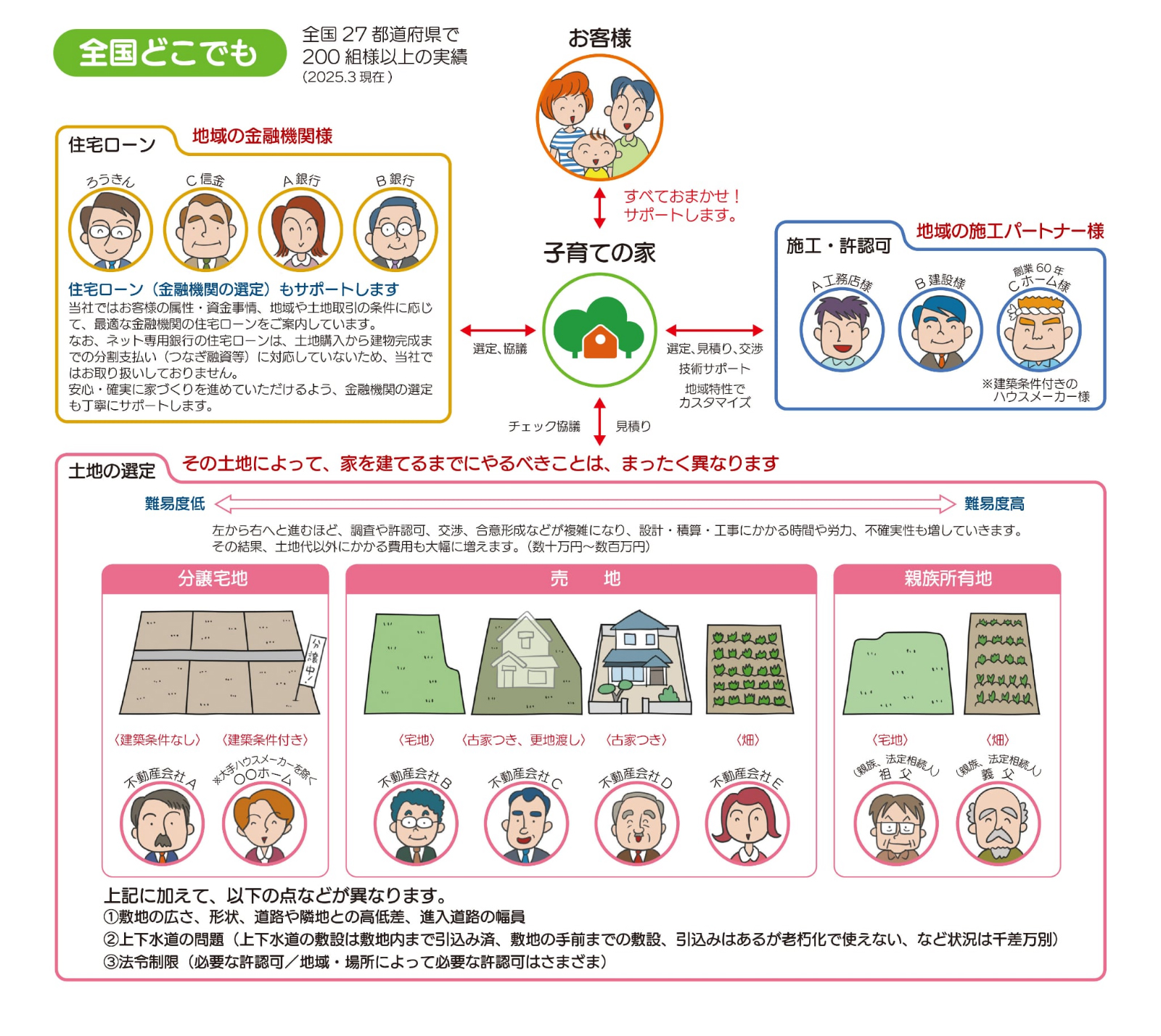- あなたの予算内で、あなたが選んだ家を、あなたが選んだ土地にお届けします。